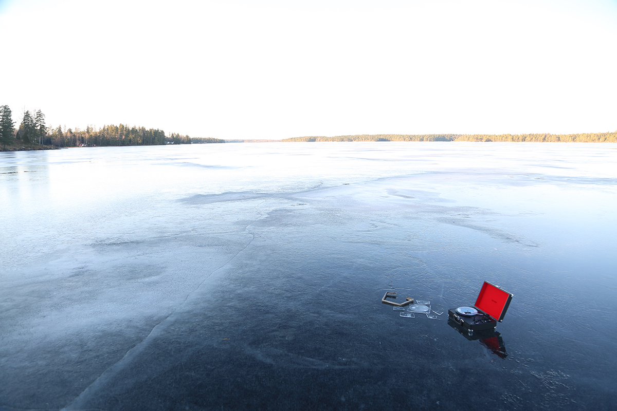 On a mild day in early spring in the year 2017, a group of people gather on the still frozen Lake Hunn outside of Rejmyre, Sweden. They cut a hole in the ice, enter the water and pull out a series of artifacts buried in the silty bottom. One of them is the Any Thing, ready to be opened and played. Over the surface of Lake Hunn, to the forest beyond, the Any Thing releases its sounds [extracted from an eco-tourism video posted to Youtube] of a small herd of now unemployed logging elephants laboring in the teak forests of Burma.